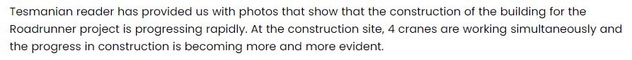 1. 테슬라의 로드러너 계획이 잘 진행되고 있어서 안심입니다 ^^ 6월에 퍼밋을 받았던 프리몬트 공장 근처 배터리 개발 관련 공장 확장도 잘 진행되고 있습니다. 사진에서 크레인 4대가 확인되고 있습니다.