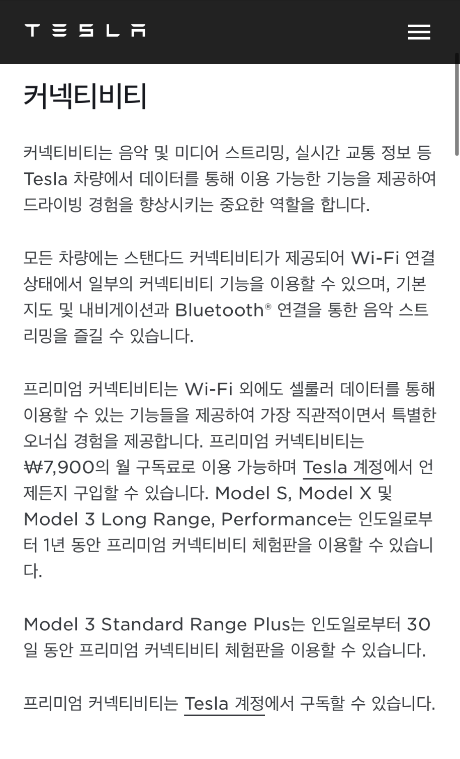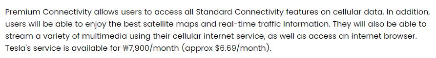 5. 한국에서 프리미엄 커넷티비티 서비스 개시했습니다. 셀룰러 데이터로 모든 표준 연결 기능에 액세스 할 수 있고, 월 7,900 원입니다.