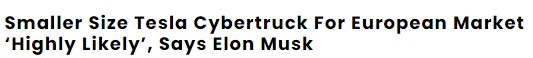3. 유럽의 상황에 맞게 사이버트럭이 스몰 사이즈로 나올 가능성이 크다고 머스크가 말했습니다.