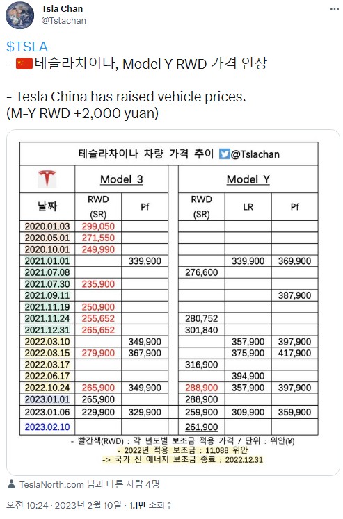5. 테슬라 차이나는 모델Y RWD 가격을 2,000 위안 인상했습니다.