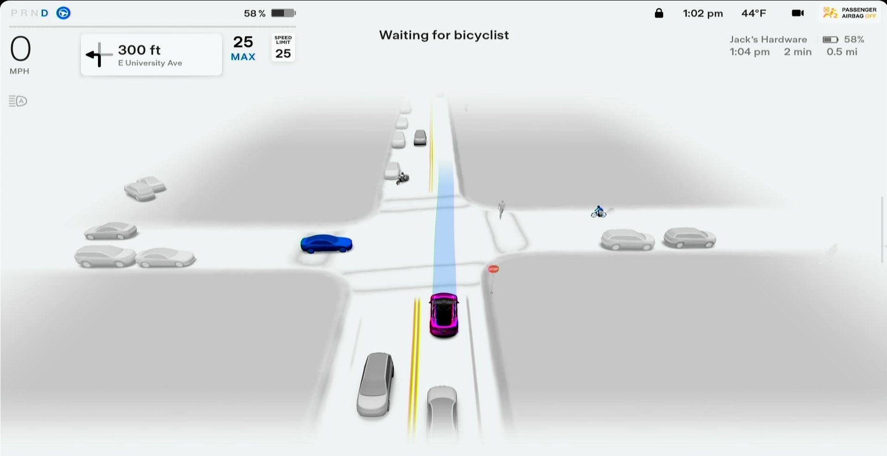 "waiting for bicyclist"라고 친절하게 알려줍니다.