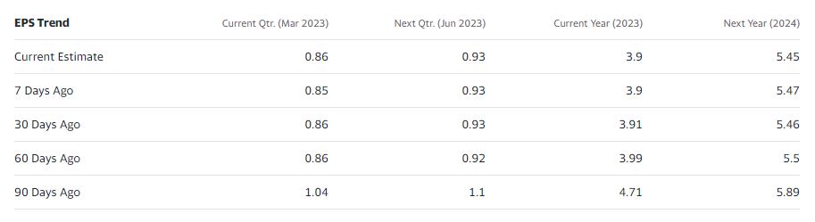 야후 파이낸스에서 확인했을 때 예측치는 0.86 입니다.
