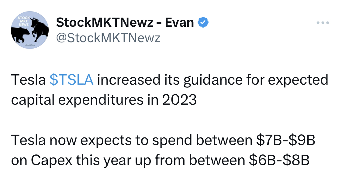 3. 10Q에 의하면 테슬라는 2023년 예상 자본 지출을 높였습니다.
