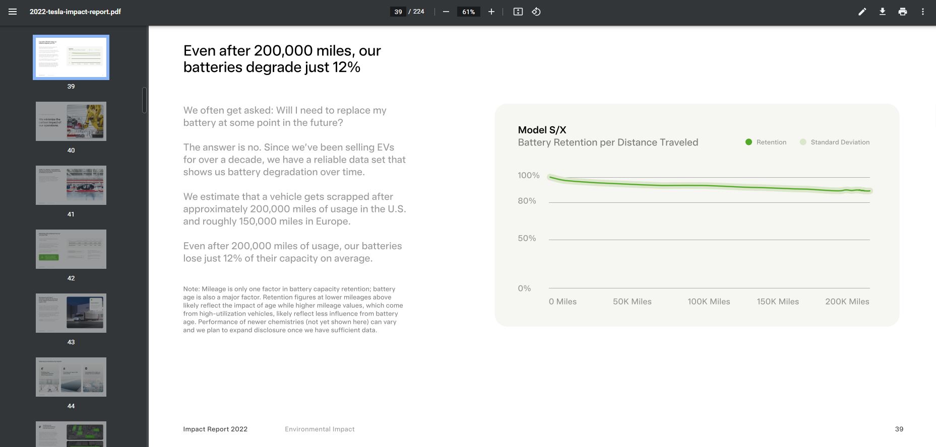 1) 테슬라 차량의 배터리 열화는 수명 기간 동안 단지 12% 가 발생했습니다.
