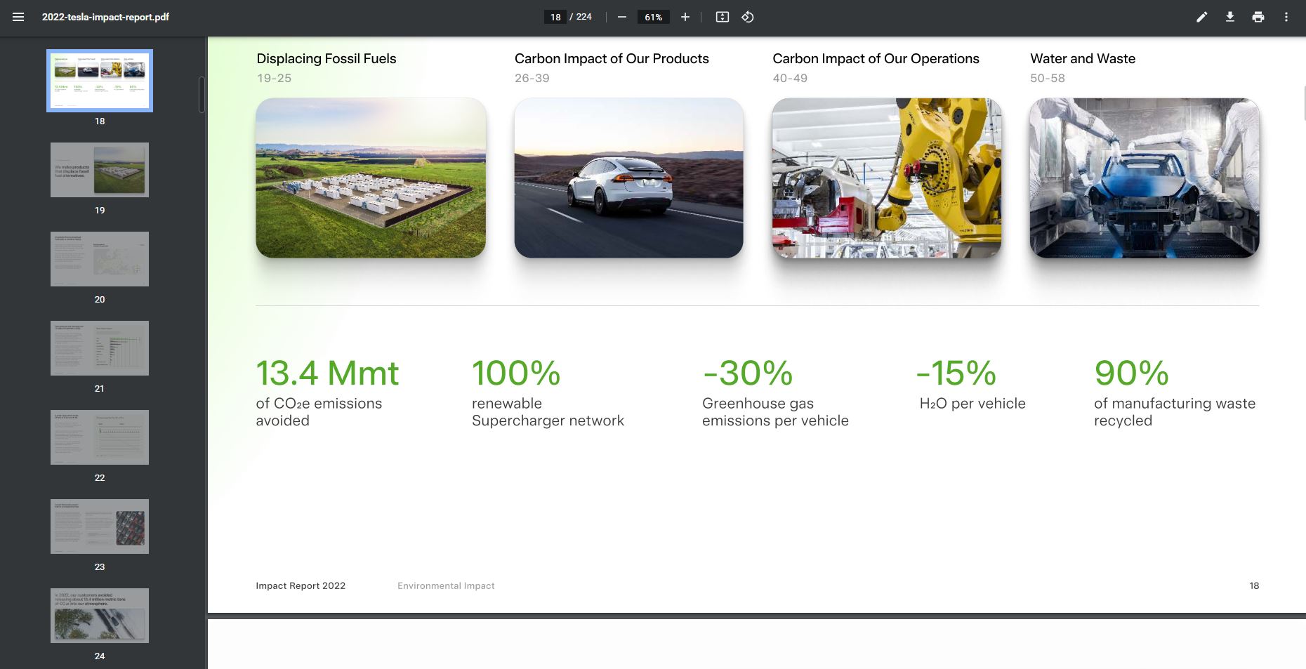 풀 레포트는 224페이지이기 때문에 주말 정도에 확인하면 좋을 것 같고, 하이라이트 내용만 올려진 보고서도 있으니 참고하시면 좋겠네요. ( https://www.tesla.com/impact )