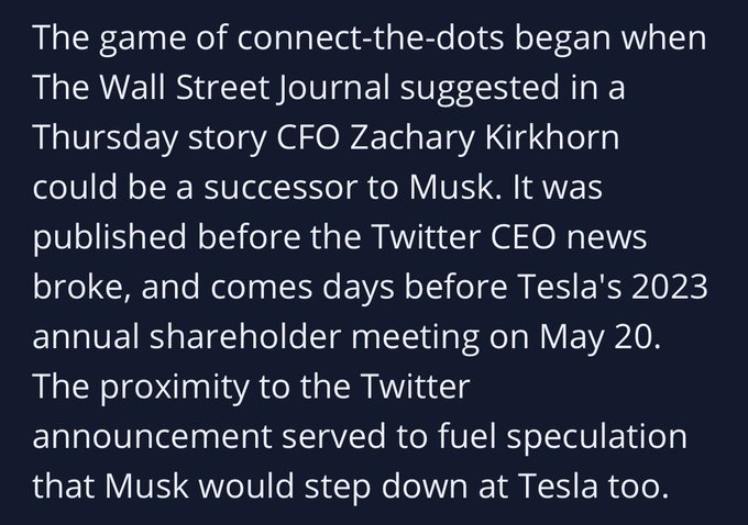 3. WeBull의 $TSLA 관련 기사를 보면, 월 스트릿 저널에서 일론이 트위터 뿐만이 아니라 테슬라 CEO 에서도 내려올 것이라는 이슈 때문에 어제 주가가 급락했다고 설명했습니다.