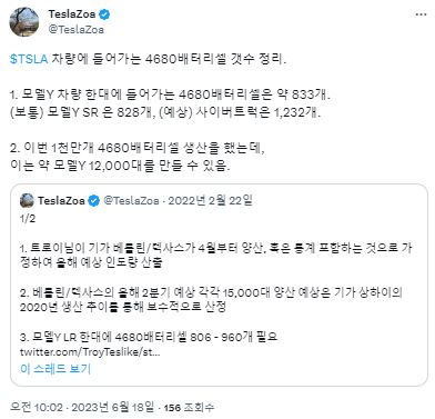 4. $TSLA 차량에 들어가는 4680배터리셀 갯수 정리입니다.