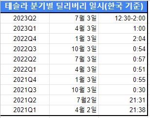 1. 2023YQ2 딜리버리 예상 일정입니다.