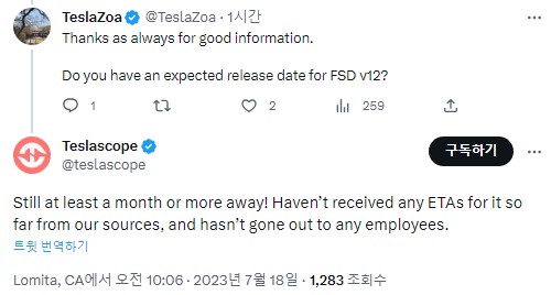 4. FSD v12는 아직 한달 이상 기다려야 할 것으로 보입니다.