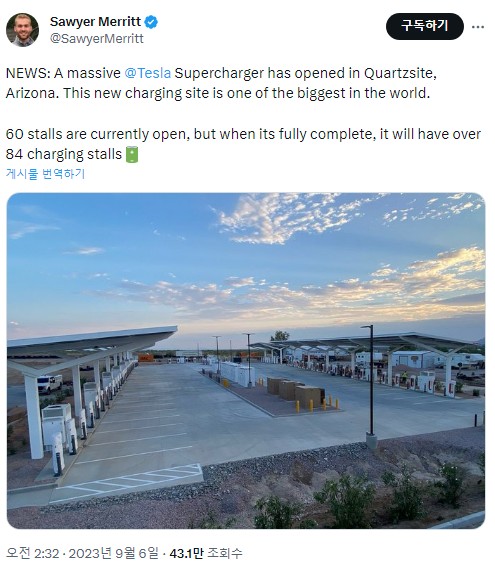 8. 미국 애리조나주 Quartzsite에 대규모 테슬라 슈퍼차저 오픈했습니다.
