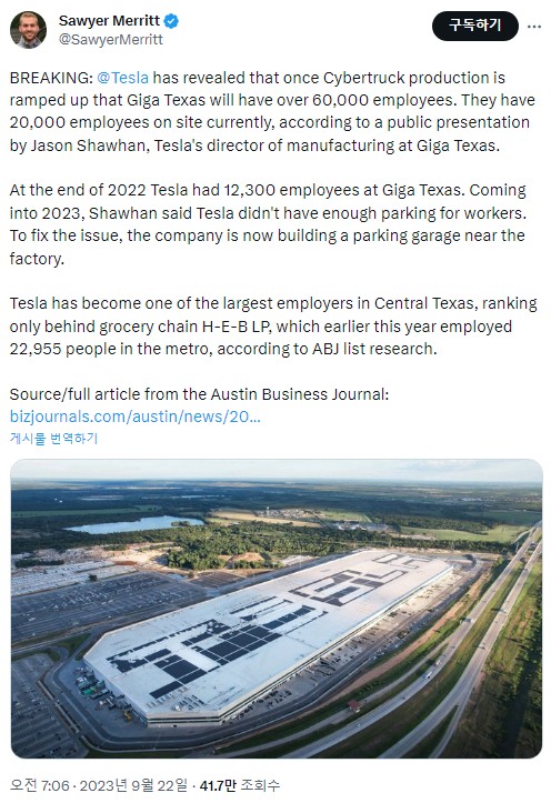 2. Cybertruck 생산량이 증가하면 Giga Texas의 직원이 60,000명이 넘을 것이는 보도가 있었습니다.