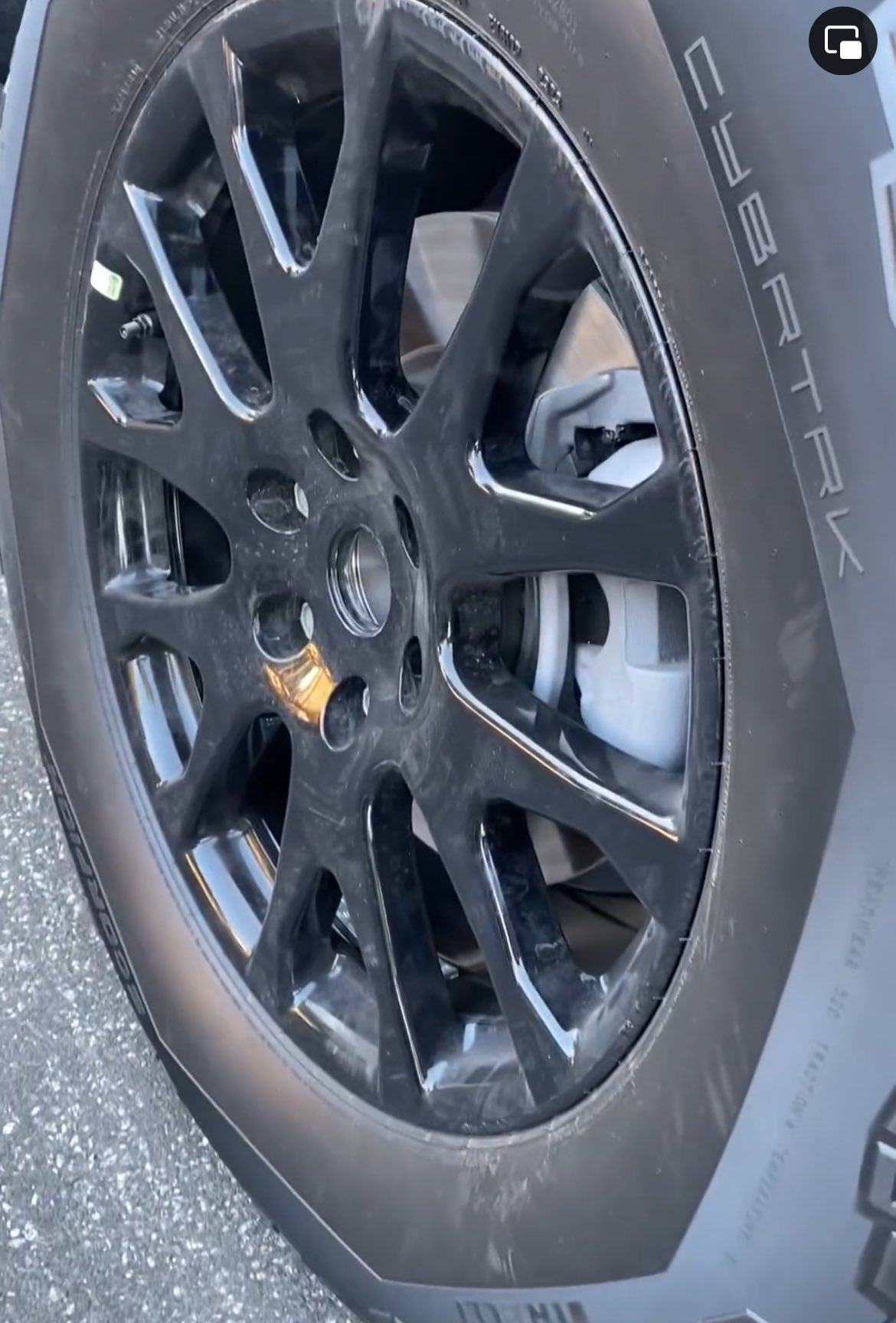 3. 목격된 사이버 트럭에 보면 타이어에 'CYBRTRK'라고 새겨져 있습니다.