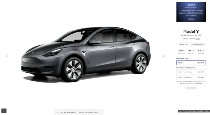 1. 테슬라가 미국에서 Model Y RWD를 $43,990에 출시했습니다. 이는 이전에 단종된 기본 Model Y AWD (now 보다 $3,750 저렴합니다.