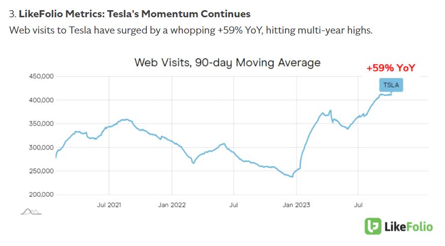 6. Tesla 웹 방문은 전년 대비 무려 59%나 급증하여 수년 내 최고치를 기록했습니다.