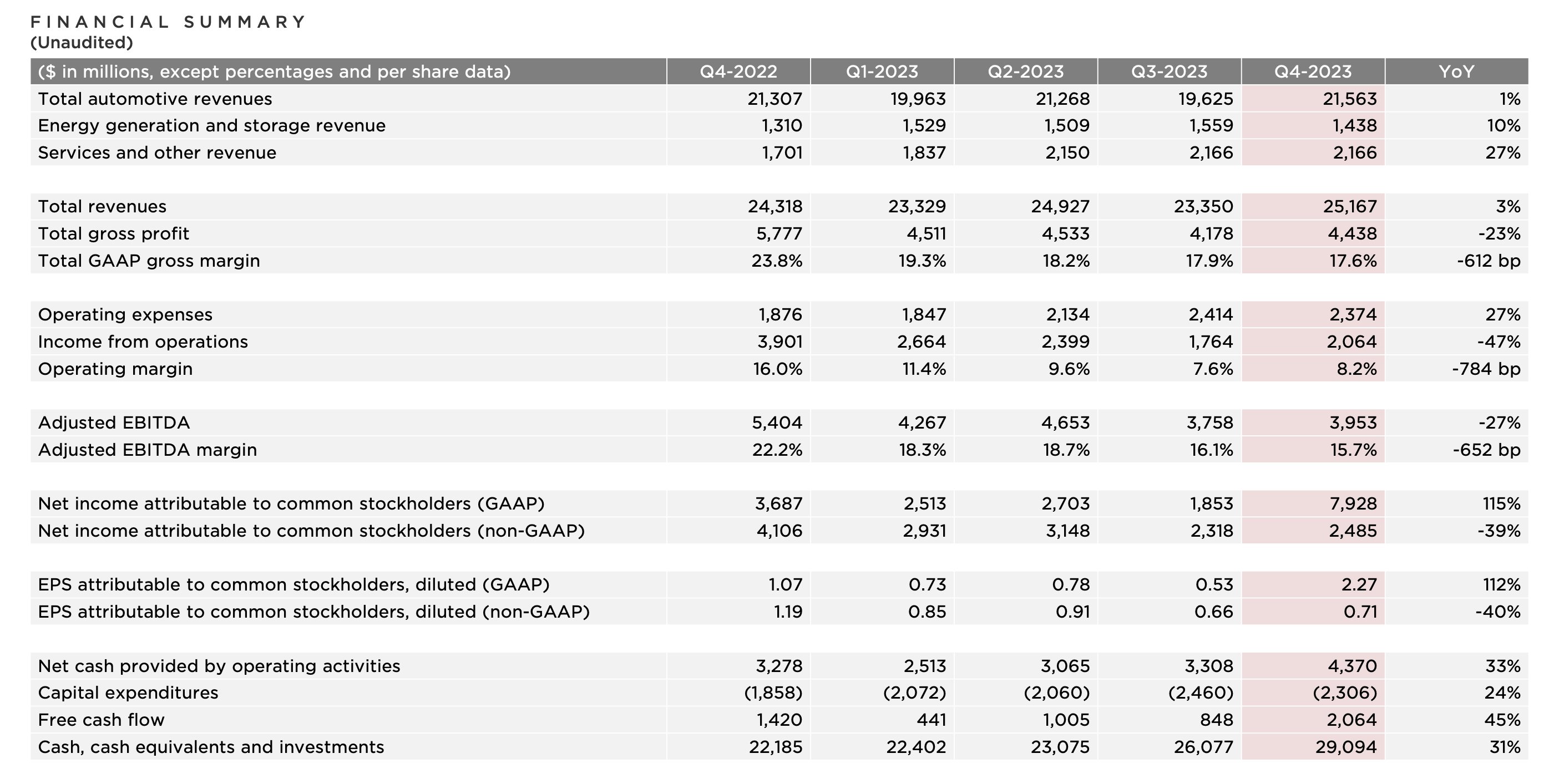 - 테슬라 팀은 생산량을 늘리고 미래 성장에 투자하며 2024년에 추가적인 비용 효율성을 찾는 데 계속 집중하고 있음.