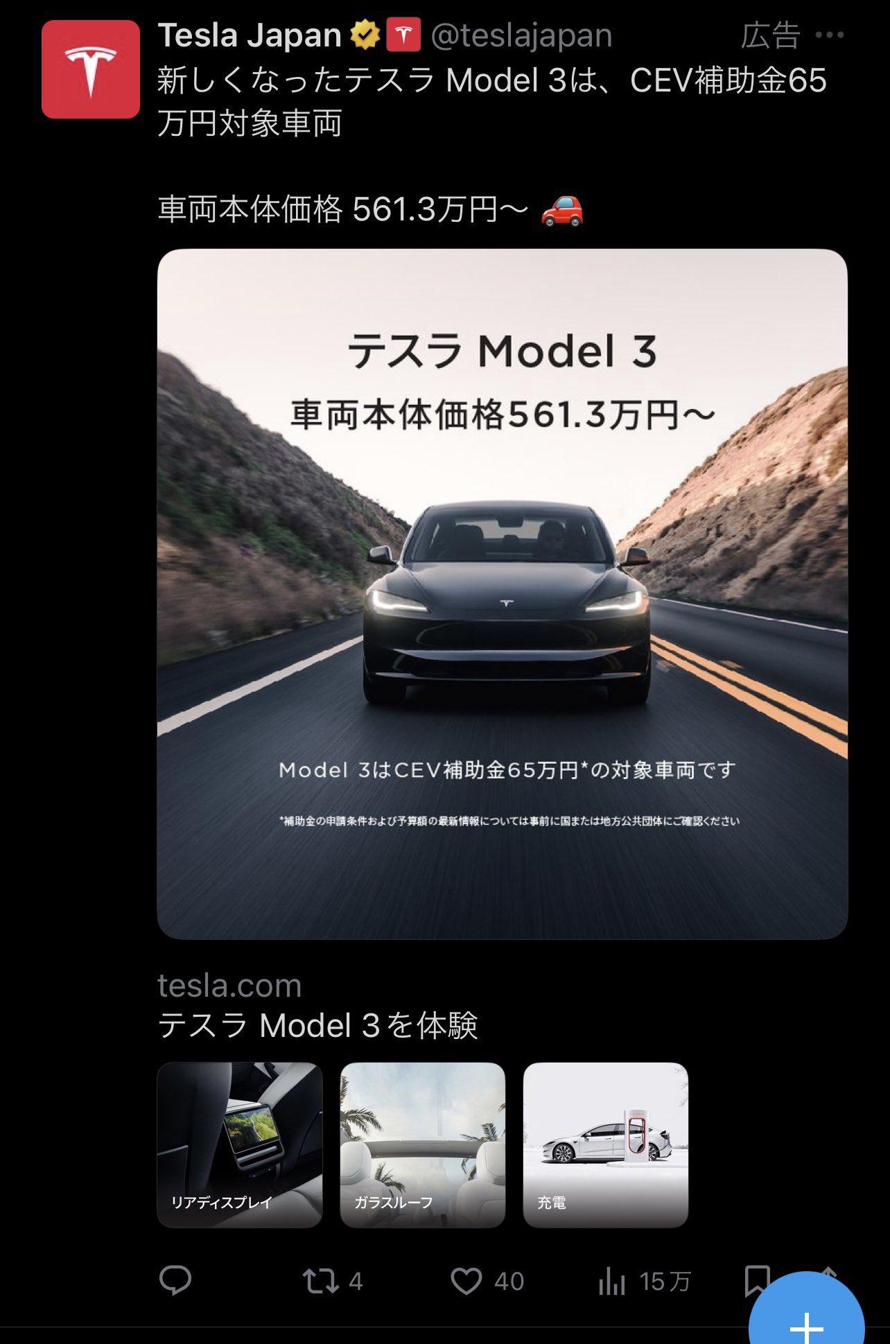 3. 테슬라는 X에서 공식적으로 일본에 광고를 시작했습니다.