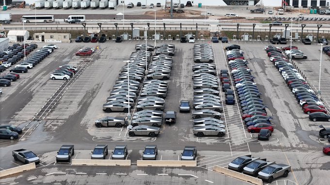 3. 기가 텍사스에서 생산되어 배송을 위해 파킹되어 있는 150여대의 사이버트럭이 목격되었습니다.