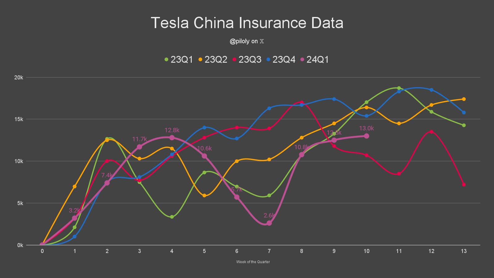 4. 3월 4일-10일, 중국에서의 테슬라 보험등록대수는 13,000대였습니다.