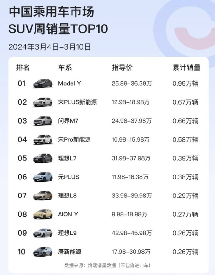 $TSLA 🇨🇳 Tesla Model Y was the best-selling SUV in China last week!