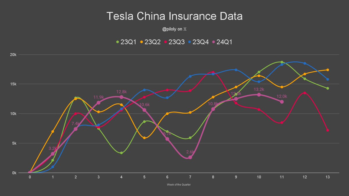 1. 테슬라의 3월 11일-17일 중국 보험등록대수는 12,000대였습니다.