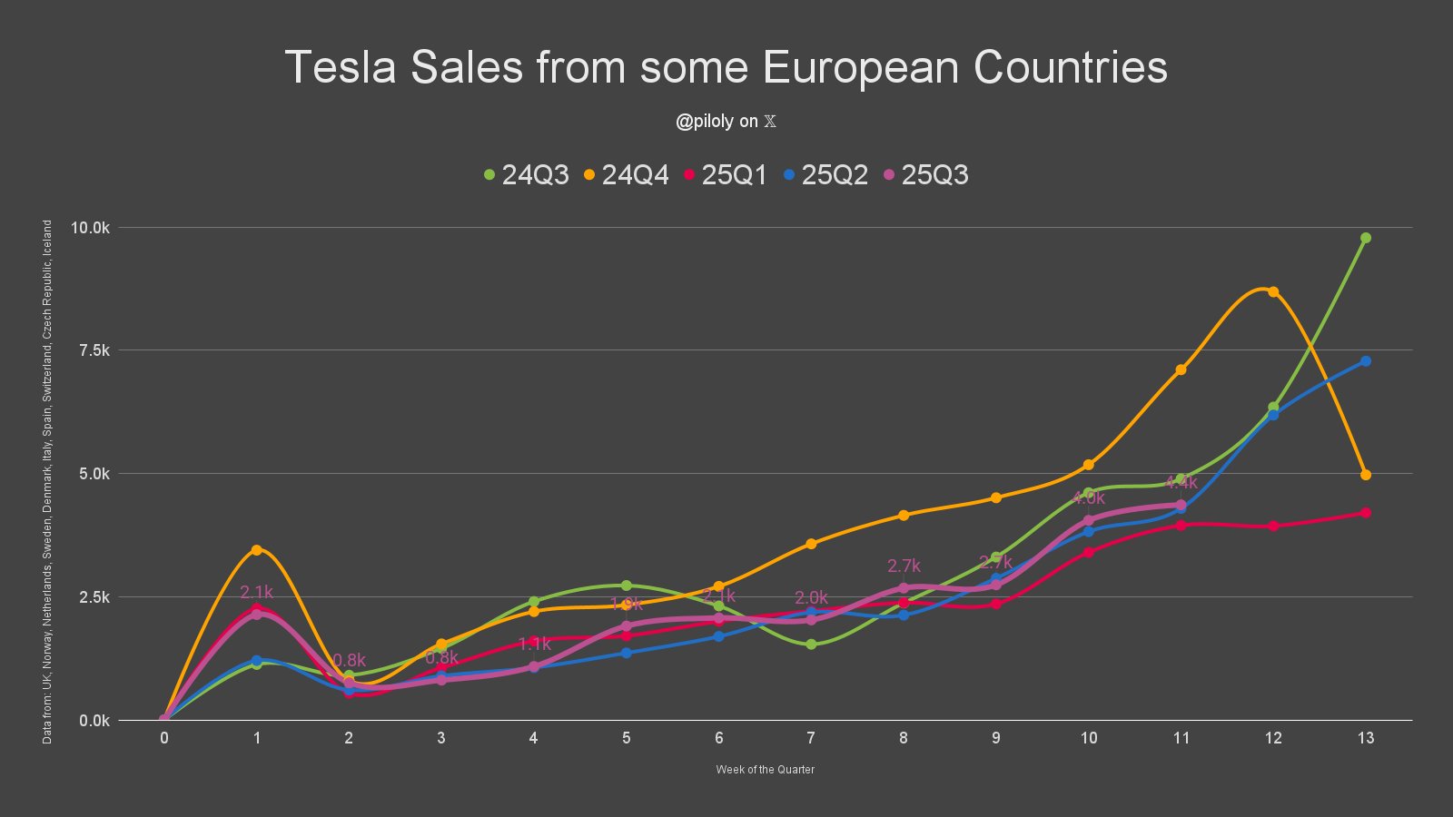 7. 9월 8일~14일 ,유럽에서의 테슬라 판매 현황입니다.