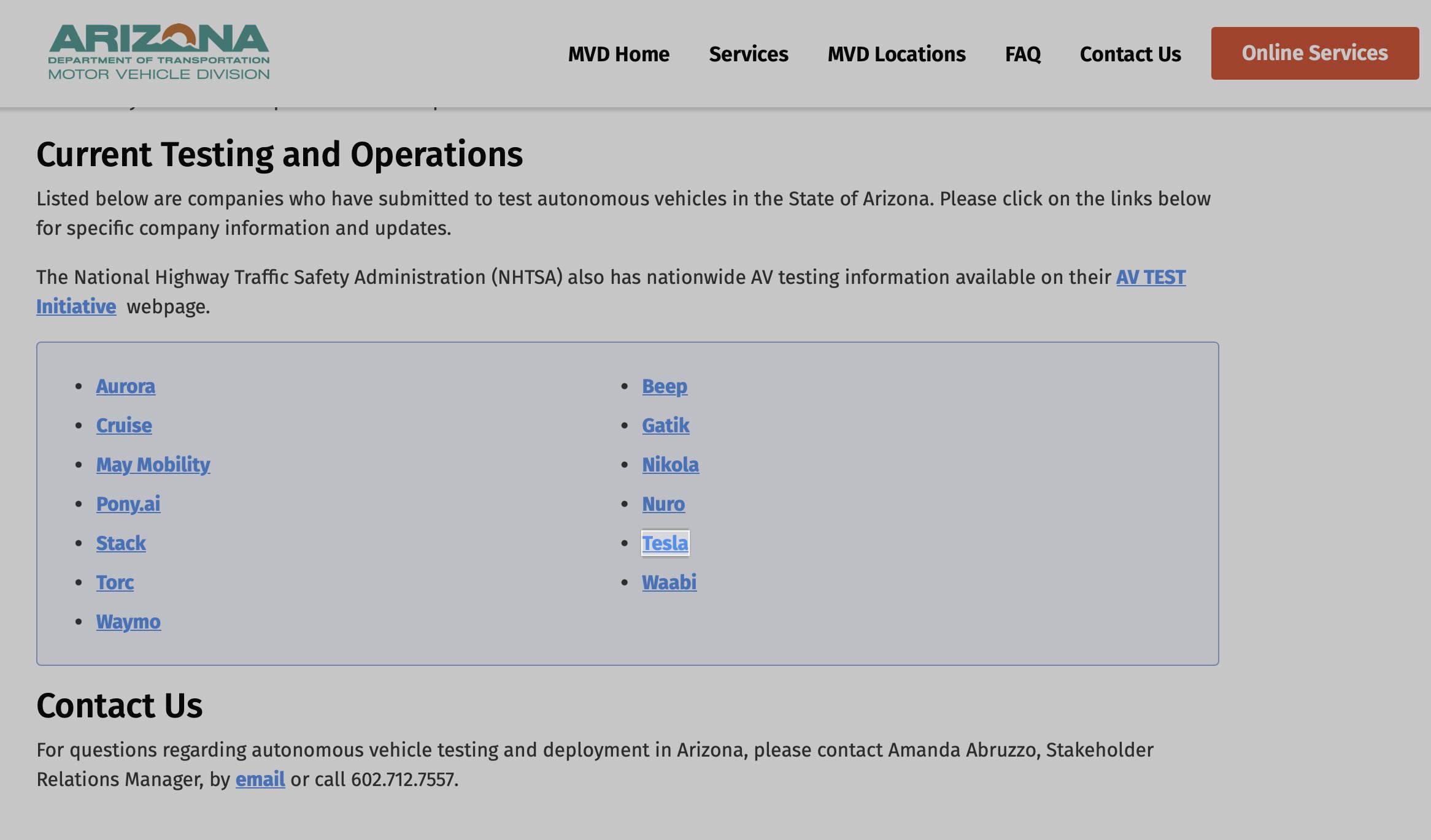 7. 테슬라가 애리조나 MVD 웹사이트에 자율주행 차량 운영자로 등록되었습니다.(이미지 포함)