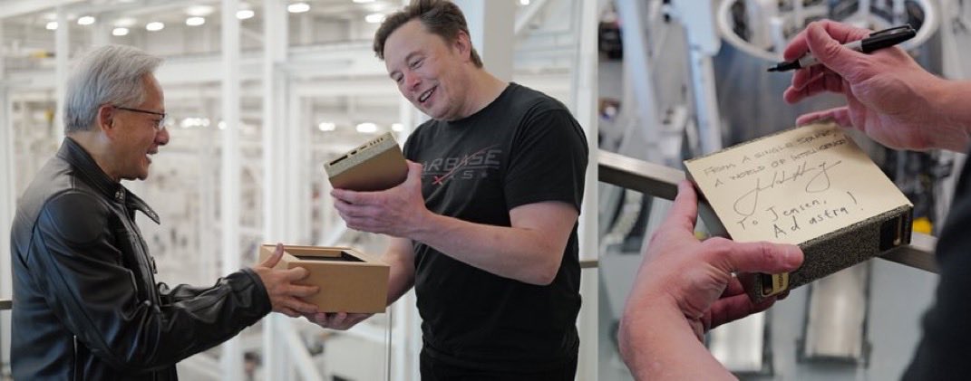 10. 엔비디아 CEO 젠슨 황이 오늘 일론 머스크에게 세계에서 가장 작은 AI 슈퍼컴퓨터를 직접 전달했습니다.