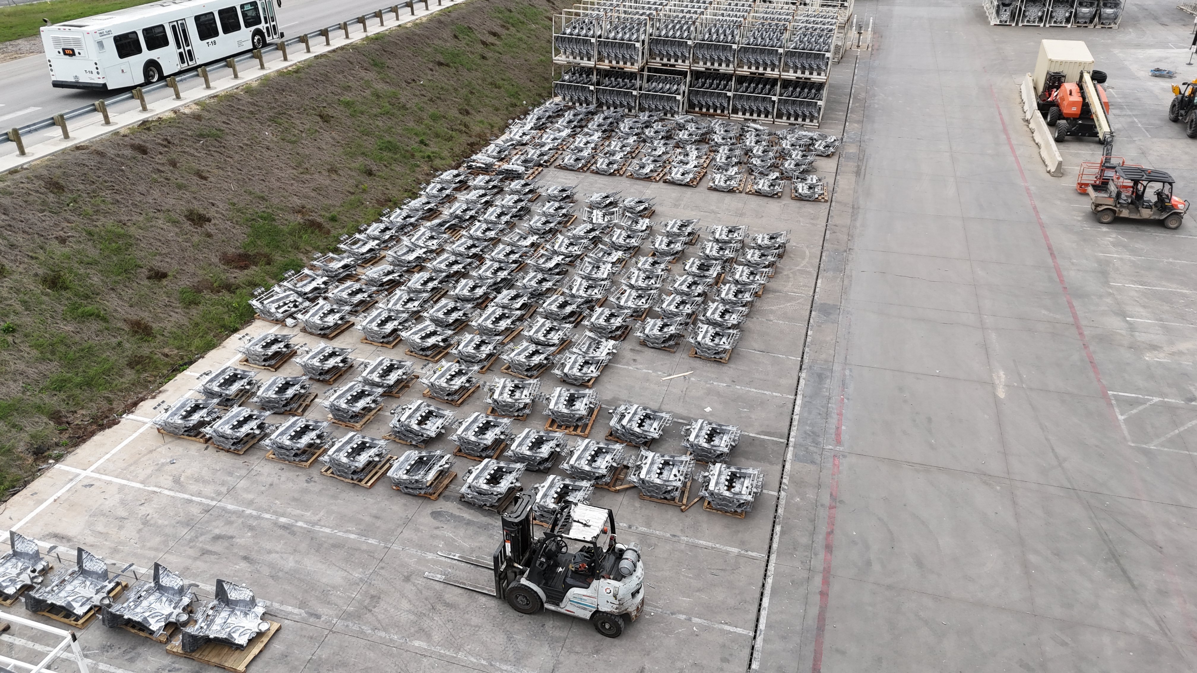 5. 기가 텍사스 동쪽 라인에서 사이버캡 후방 메인 구조물 상단을 이루는 후부 캐스팅과, RSF·FUB 캐스팅이 대량으로 포착되었습니다. 특히 최종 지붕 패널이 올라가는 상단 보강 구조와 지붕의 ‘채널’ 라인이 뚜렷하게 확인됩니다.(이미지 포함)