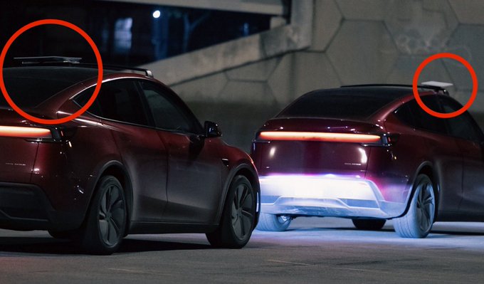 3. 테슬라 모델 Y 차량들이 스타링크 안테나를 지붕에 장착하고 텍사스주 오스틴에서 주야간 로보택시 운행을 하고 있습니다.