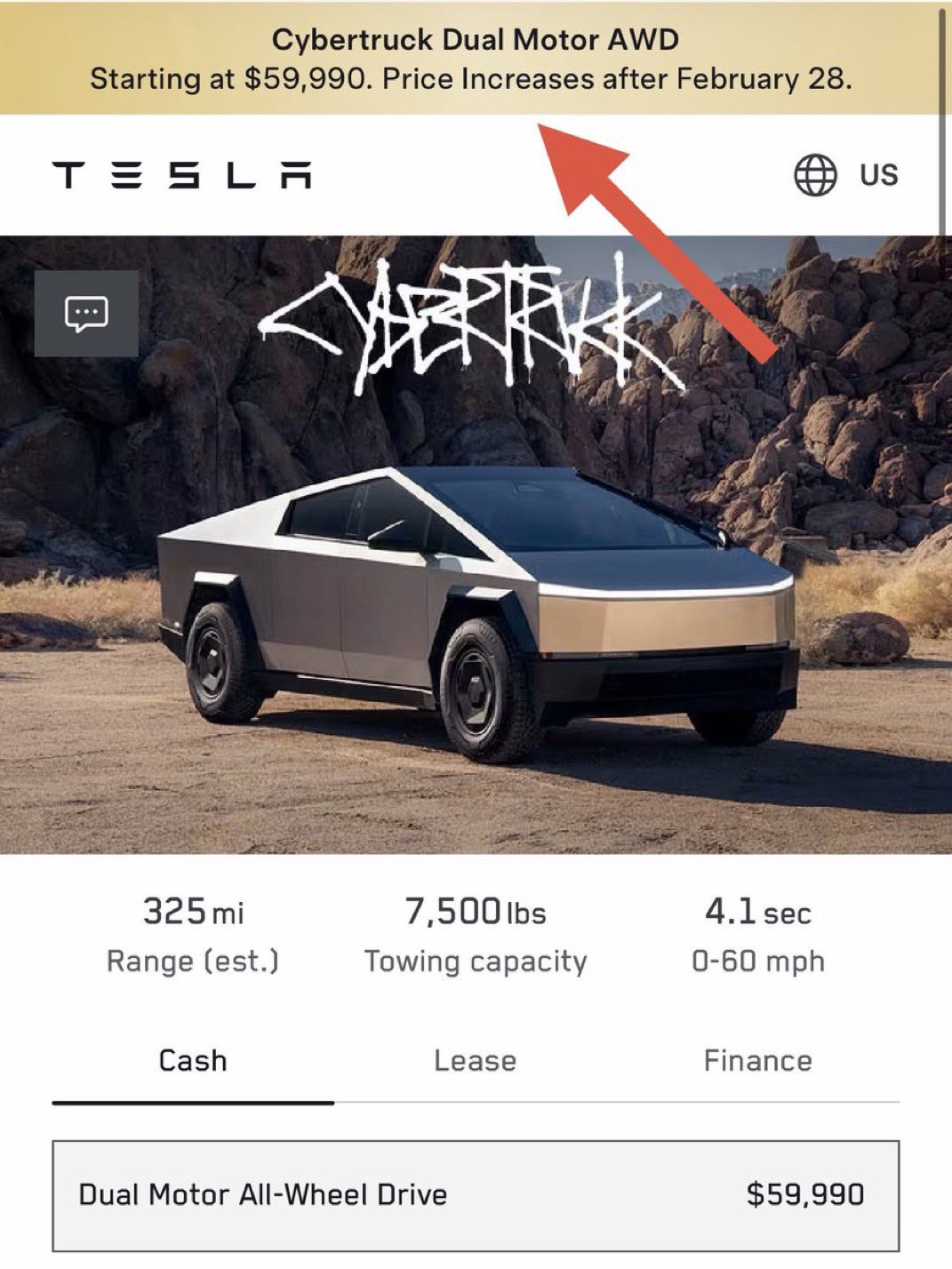 4. 테슬라가 신형 사이버트럭 듀얼 모터 AWD의 가격이 2월 28일 이후 인상될 것이라고 공식 발표했습니다.