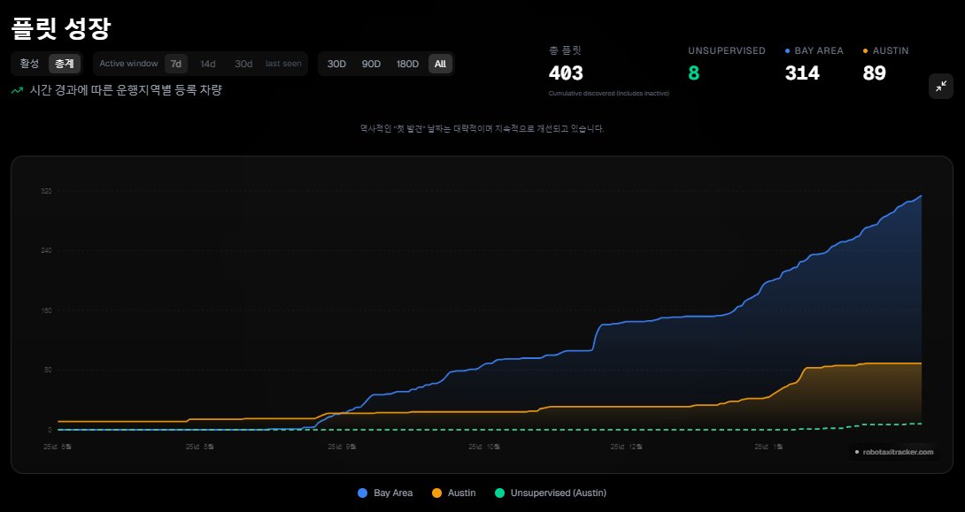 3. 로보택시 추적 앱에서의 플릿 등록대수는 403대입니다.