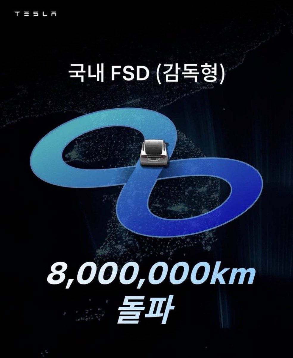 2. 한국에서 FSD 누적 주행거리가 도입 100일 만에 800만 km를 돌파했습니다.
