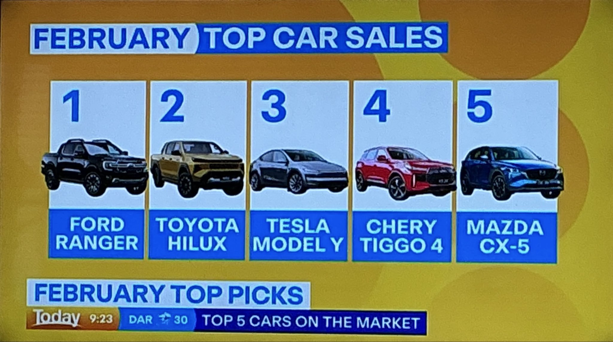 5. 지난달 모델 Y는 호주에서 세 번째로 많이 팔린 차량이었습니다. 여기에 더 큰 모델 Y L이 이번 주 호주에 새롭게 공개됐으며(인도는 5월 시작), 판매는 앞으로 더 늘어날 것으로 예상됩니다.