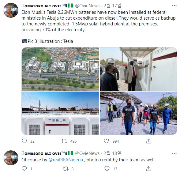 4. 나이지리아 아부자에 테슬라 파워팩 2.26MWh가 설치 되었습니다.