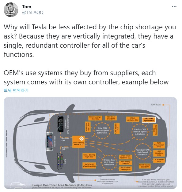 6. '테슬라는 왜 칩 부족 현상을 겪지 않는지'에 대해 트위터 Tom 님이 언급해 주셨는데,