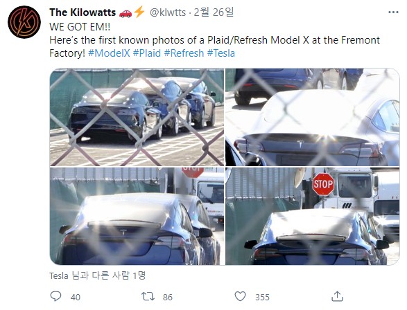 1. 지금까지는 모델S 플레이드만 목격이 되었는데, 프리몬트 공장에서 리프레시 모델X도 눈이 띈다고 합니다.