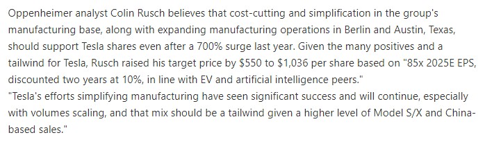 1. 오펜하이머에서 테슬라 PT를 $550 에서 $ 1,036 으로 상향했습니다.