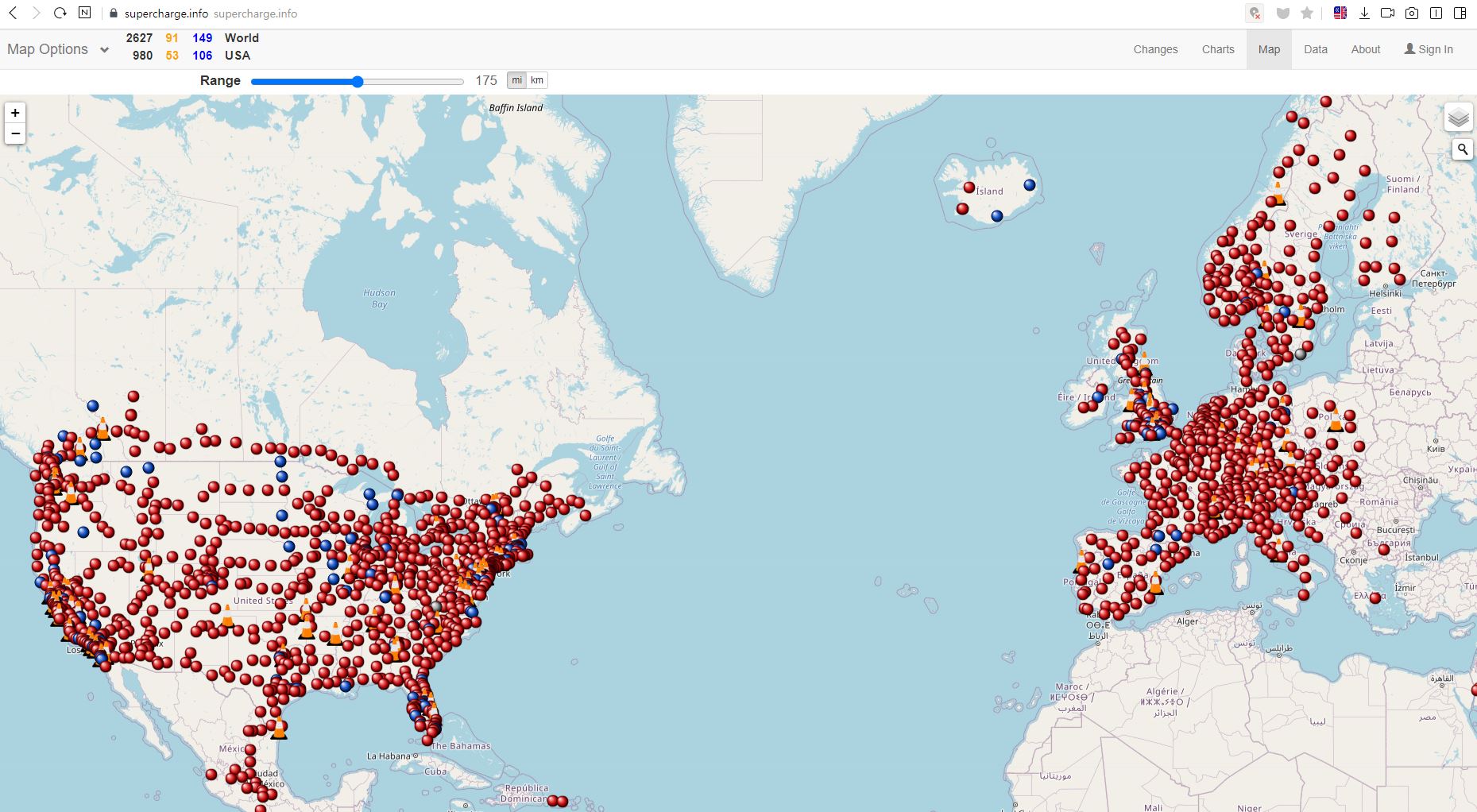 미국에 설치된 슈퍼차저 분포를 확인할 수 있는 지도를 보면, 지금도 많은 인프라가 갖춰져 있어 보이는데, 꾸준히 확장 하고 있습니다.