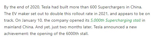 2. 중국에서 1월 10일, 5천번째 슈퍼차징 스톨을 설치 했는데, 불과 2달만에 6천번째 스톨을 설치했습니다.