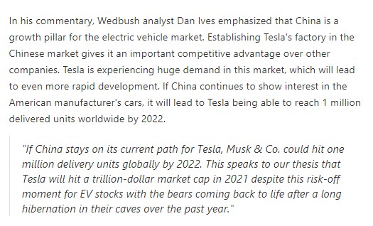 어제 포스팅 한 것과 마찬가지로, '테슬라는 2022년까지 전세계 100만대 차량 납품에 도달할 수 있고, 2021년 말까지 1조달러 규모의 기업이 될 것이라고 말하면서, 최근의 주가하락이 대규모 매수기회'라는 내용으로 실렸습니다.