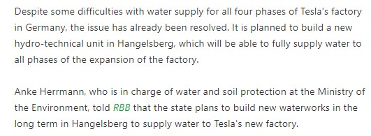 2. 기가 베를린 건설과 확장에 필요한 수자원 공급에 문제가 없다고 합니다.
