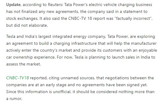 3. 인도에서의 충전 인프라를 확대할 예정이고, 이를 위해 인도 최대 통합 예너지 기업인 타타파워와 협의중이라는 루머가 있습니다.ㅣ