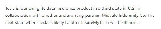 2. 테슬라가 미드베일 리저빙과 공동으로 데이터 보험 상품을 출시할 예정입니다.