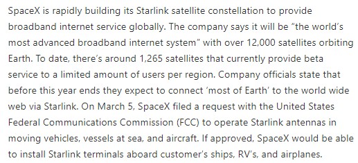 4. 스페이스X에서 미국 항공기에서의 스타링크 관련 송수신 테스트를 진행할 예정입니다.