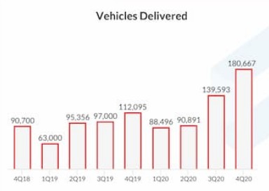 차량 판매는 보통 4분기가 가장 많고, 1분기가 적은데, 테슬라는 2021년 1분기 딜리버리가 2020년 4분기 딜리버리를 2.34% 상승으로 넘어섰습니다.