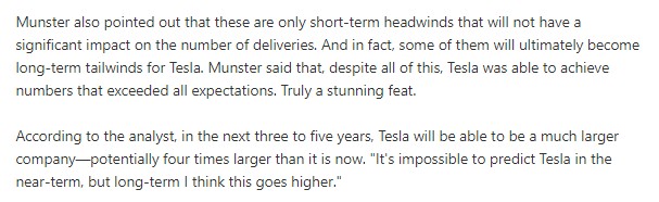 그 당시 '테슬라가 3~5년 안에 4배 정도 더 큰 규모의 회사가 될 것이다, 단기적으로 예측은 어렵지만 장기적으로 보면 더 높은 성장을 이룰 것이다'라고 말했습니다.
