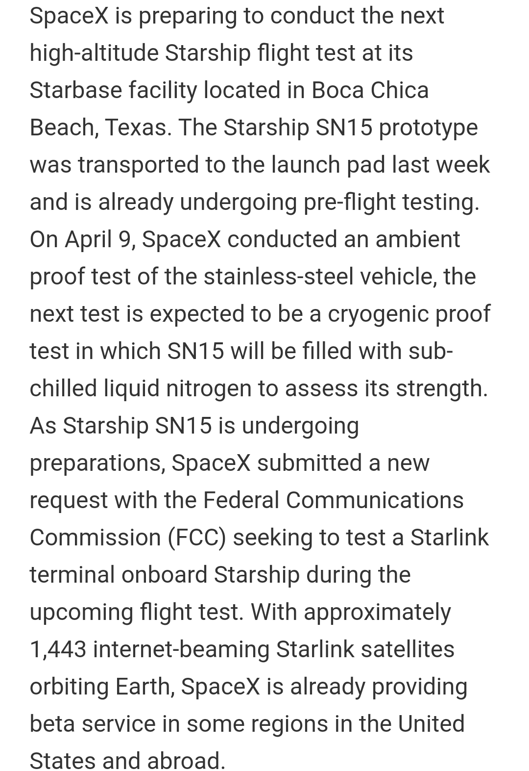 2. 스타쉽 비행테스트 때 스타링크 위성 서비스 연결도 시험하기 위해 FCC 에 허가서를 제출했습니다.