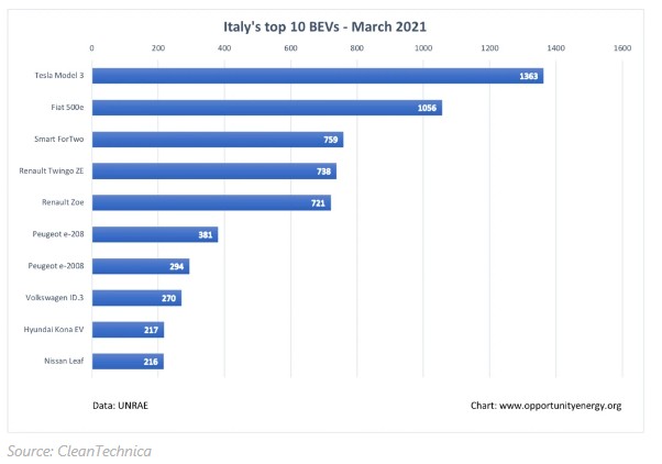 1. 모델3가 이탈리아에서 2021년 3월 베스트 셀러가 되었습니다.
