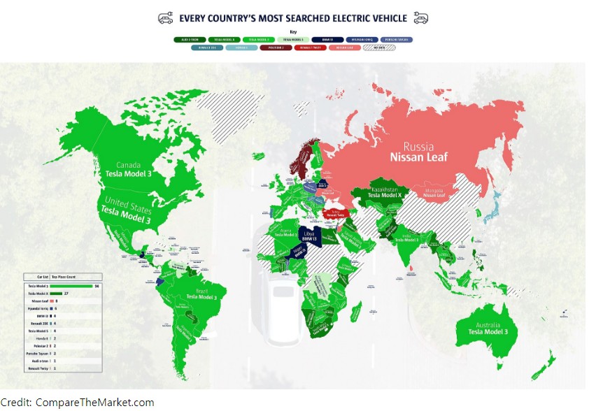 5. 현재까지 구글을 통해 전세계인들이 가장 많이 검색한 EV 차량은 모델3와 모델X 라고 합니다.