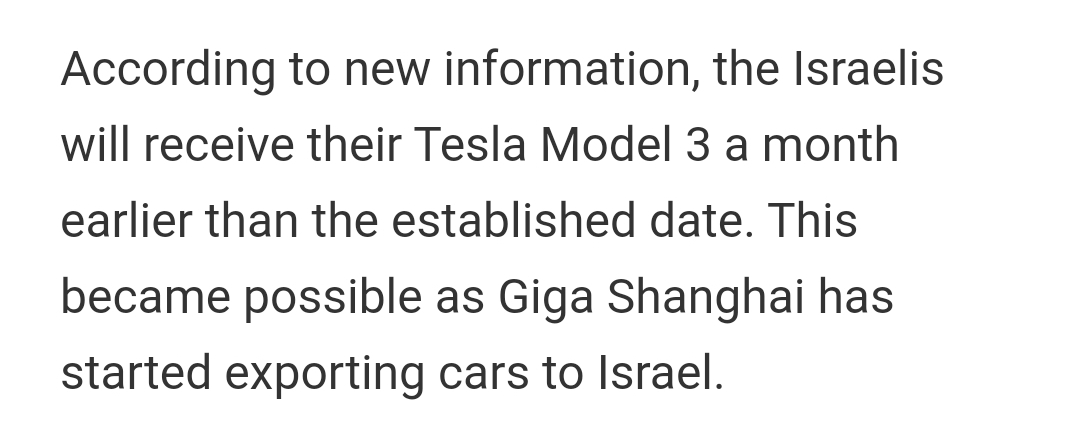 3. 모델3가 기존 계획보다 한달 빨리 이스라엘에 딜리버리됩니다.
